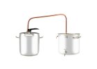Ideální pro domácí použití. Destilační souprava obsah 17 l z nerezové oceli. Propojovací potrubí a potrubí chladiče jsou z mědi. Destilační nádoba s dvojitým dnem.