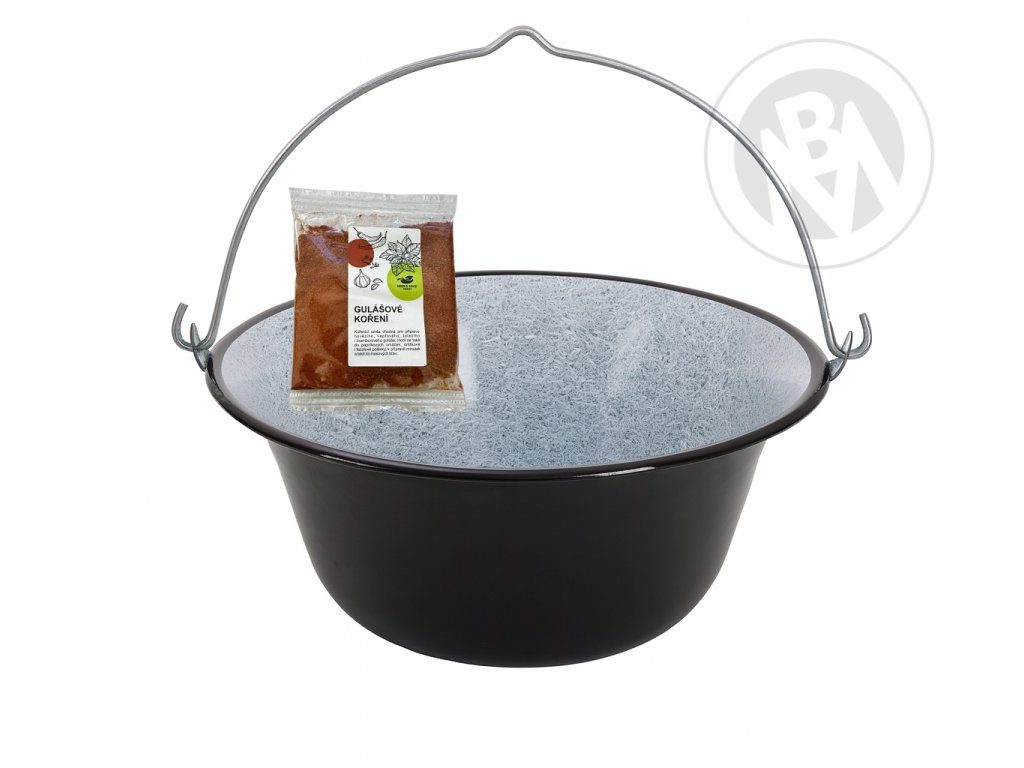 Kotlík je vyroben z 1 mm kotlového plechu. Povrch je smaltovaný: 1. základní smalt, 2. vrstva černý smalt, 3. vrstva - vnitřní povrch "žulový" design, tato má podstatně vyšší odolnost vůči kyselinám a mechanickému poškození. Závěsné / přepravní ucho je z pozinkované oceli.