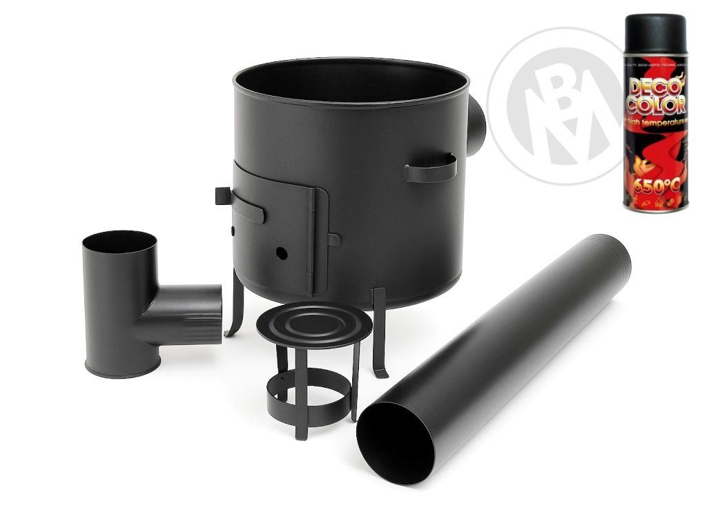 Kotlina je kompletní, včetně komínu a popelníku. Zdarma přidáme žáruvzdorný sprej, kterým lze opravit případné poškození lakování.